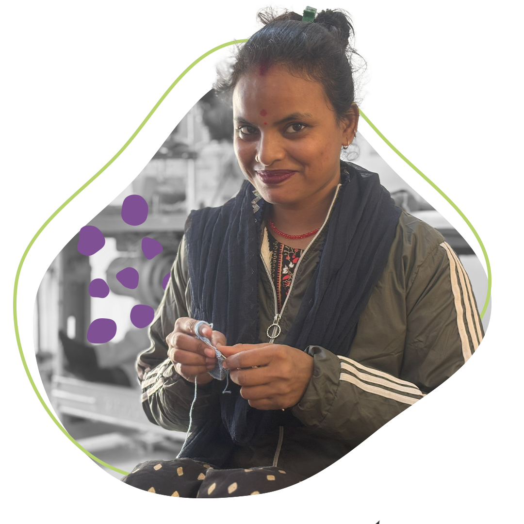 Gunjan and Lilavati are the newest additions to our team, and they’ve already made their mark with their exceptional hand-knitting skills and remarkable speed. This inseparable duo brings a unique energy to our workspace, balancing each other perfectly.